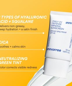 A green-tinted mineral sunscreen with 8 types of hyaluronic acid and soothing Cica that protects while neutralizing visible redness.