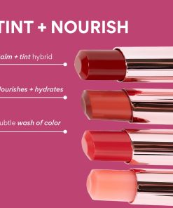 A tinted lip balm hybrid that delivers nourishing hydration and a subtle blush of color. This natural lip tint balm comes in 5 shades + a clear hydrating lip treatment for a nourishing, no-makeup makeup look.