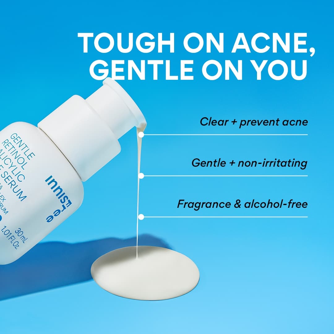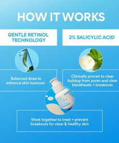 A gentle & effective daily retinol serum for all skin types with 2% salicylic acid that treats + prevents acne & soothes redness without irritating.