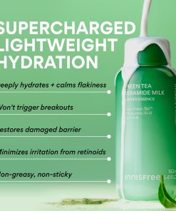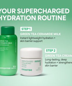 Supercharged hydration + barrier boost – power up skin’s barrier + lock in moisture fast with this limited edition set including a full size Green Tea Cream and mini Green Tea Ceramide Milk, plus a free pouch!