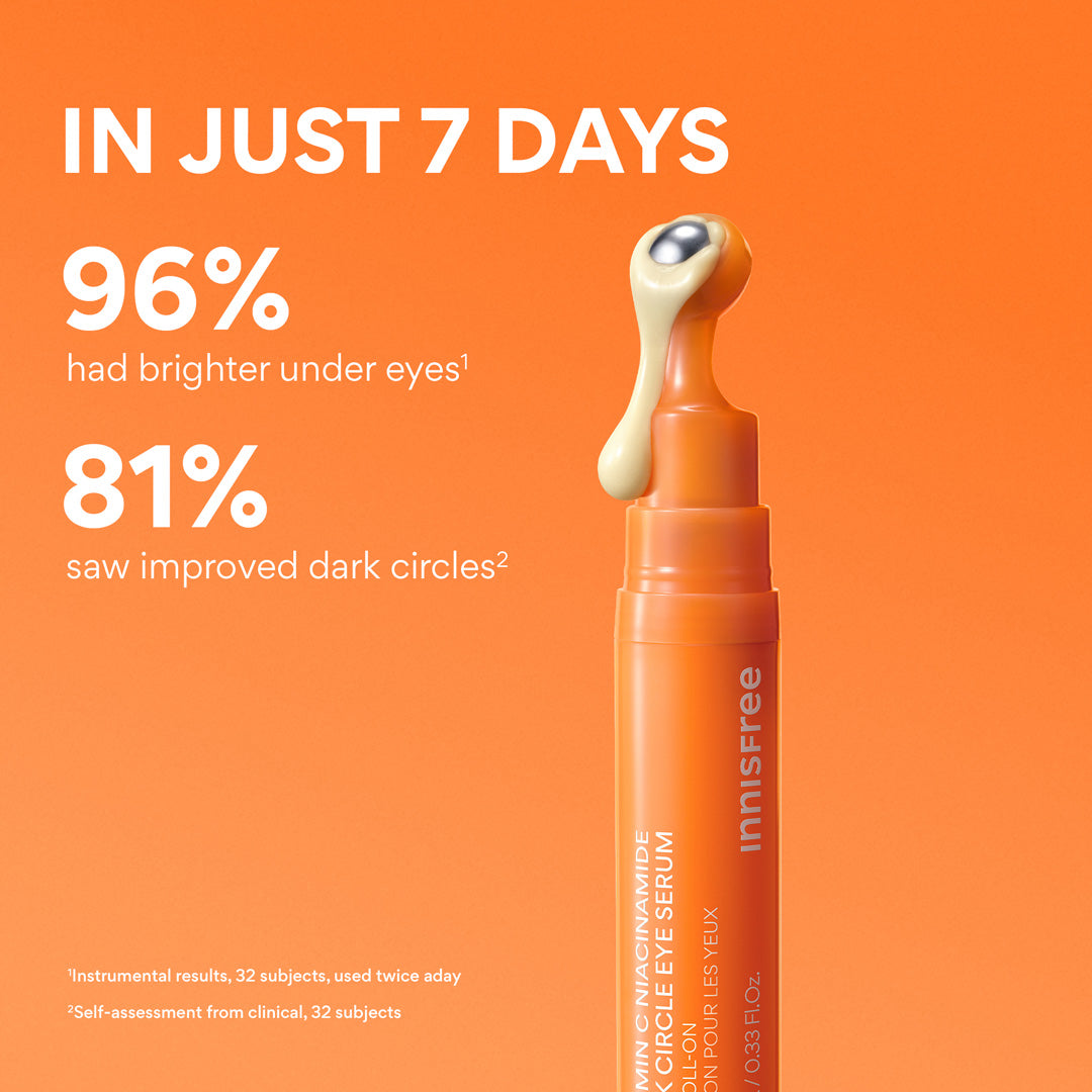 Visibly reduce dark under eye circles in just 7 days with our brightening eye serum. Powered by 7% Vitamin C + Niacinamide for instantly more awake-looking under eyes. Roll on daily with the circulation-boosting, cooling metal rollerball applicator.