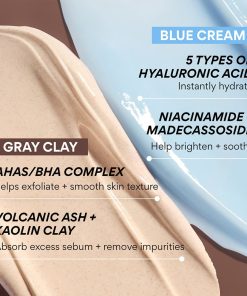 Discover the clay mask for pores that purifies and hydrates in one swirl. This Korean clay mask combines volcanic gray clay to exfoliate and clear pores with a hydrating blue cream that softens and smooths skin. Powered by hyaluronic acid, niacinamide, and AHA/BHA, this volcanic clay mask refines texture, balances oil, and leaves skin visibly clearer and refreshed in just 3 minutes.